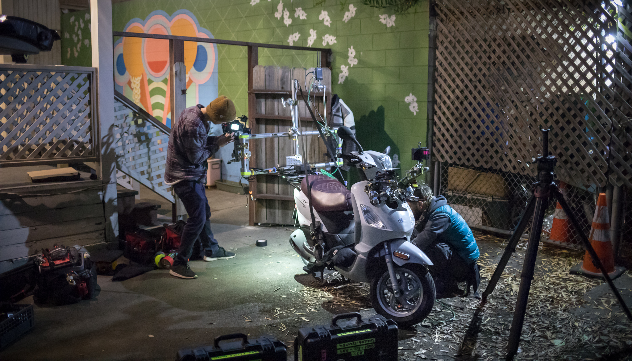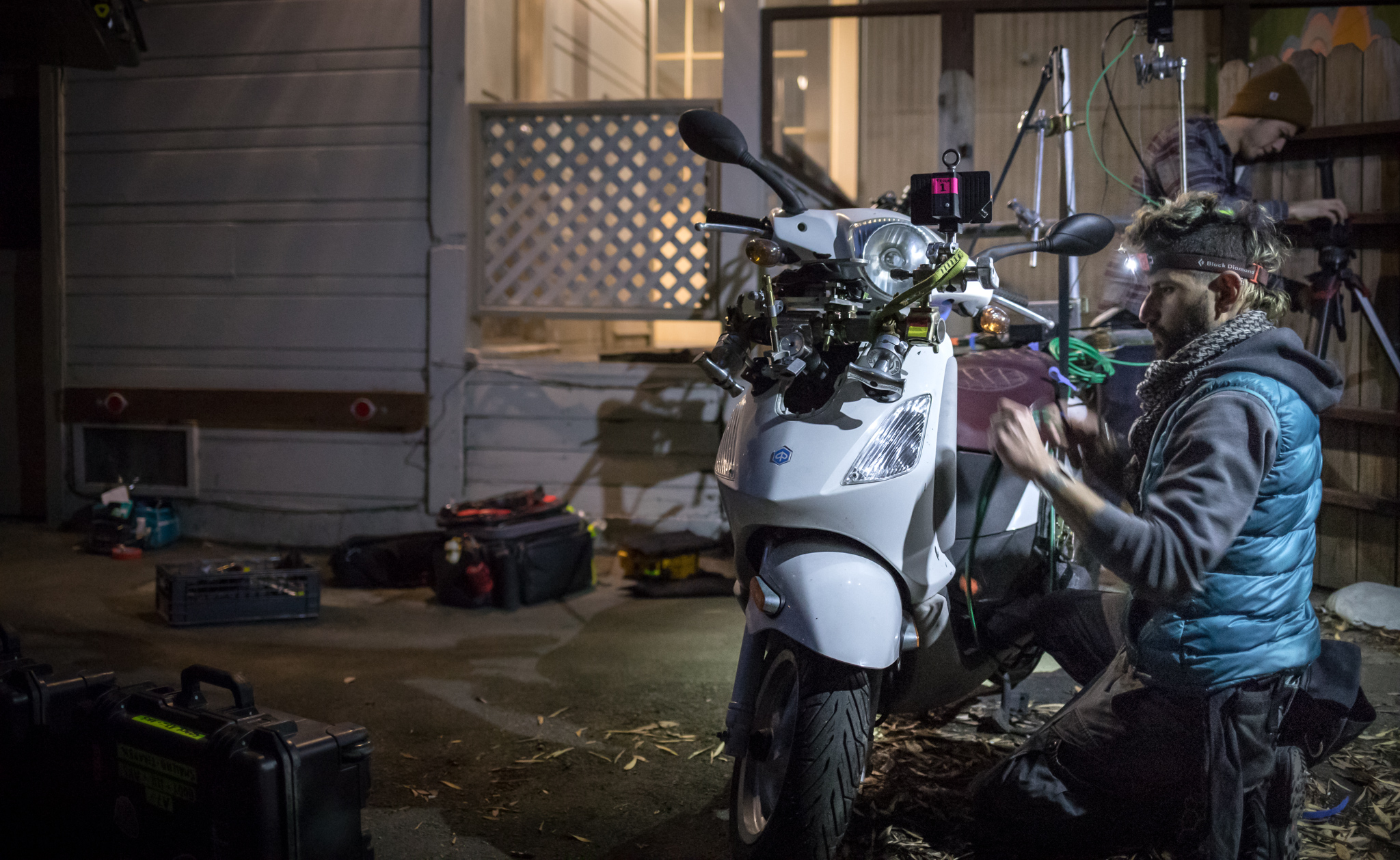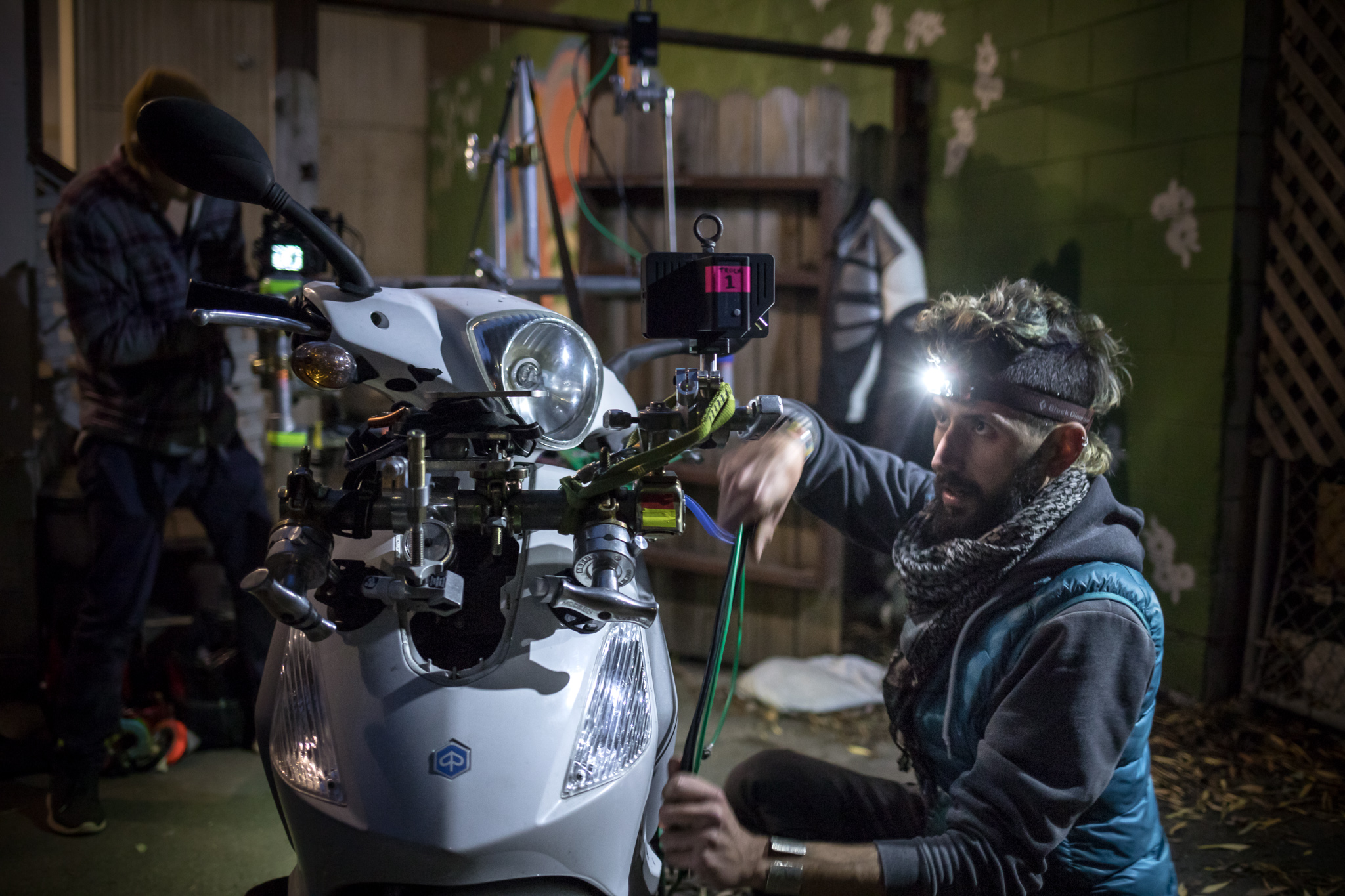 In theory, it’d work… But it was a risk… There is in fact only one sunset per day… But they committed, set the camera confidently, let the sky fade-to-black, and let the city transform into its nighttime self. Once the sun slept, they rack-focused to the cyclist, riding into frame with that glorious illuminated helmet, showing off its built in lights.