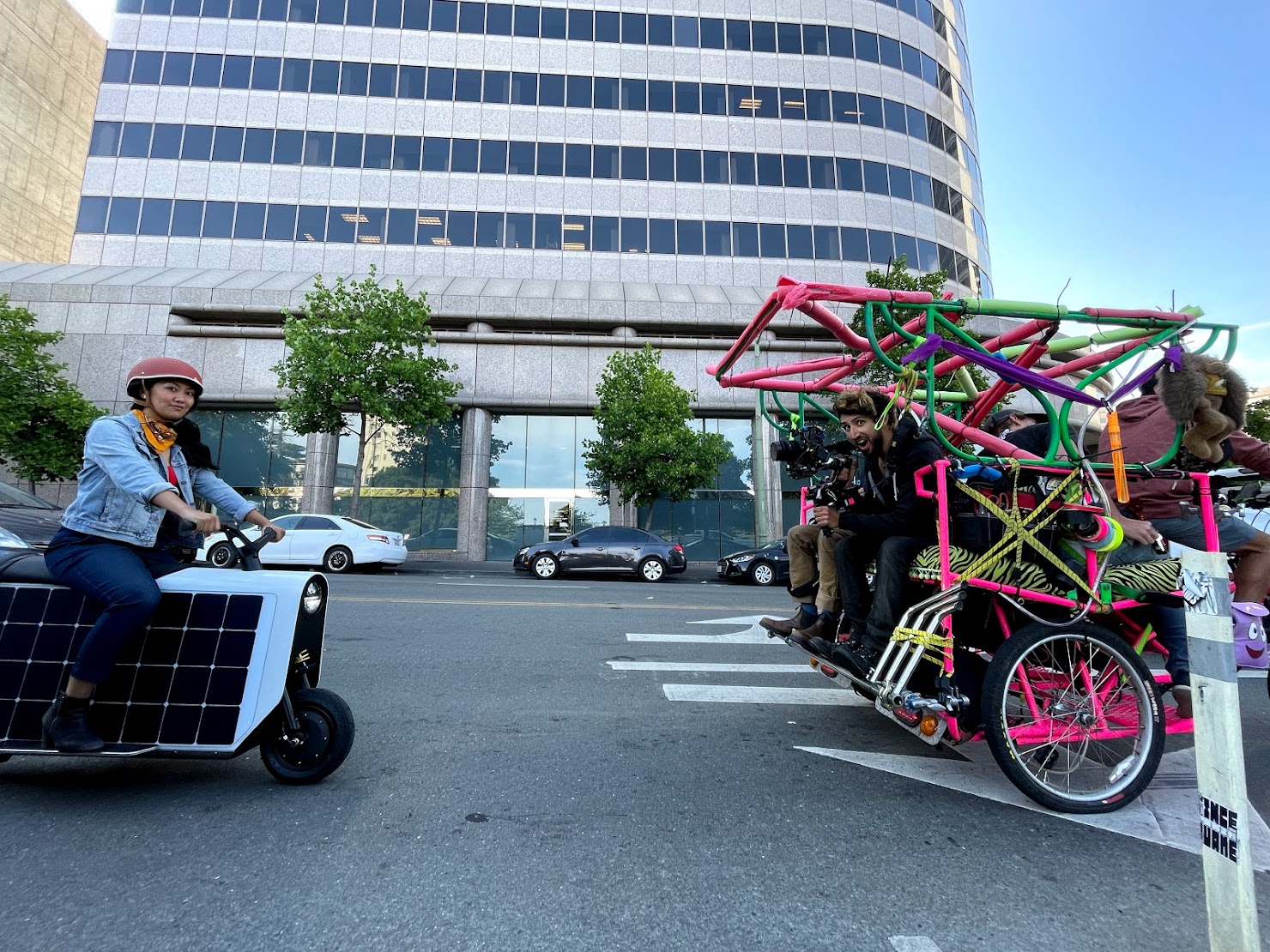 We learned just how eye-catching the scooter was as we charted a course across the city for the Lightfoot proof-of-concept video. Sure, we were a scene with two cameras rigged to a pedicab, but the scooter was still the bright shining star. 🛵